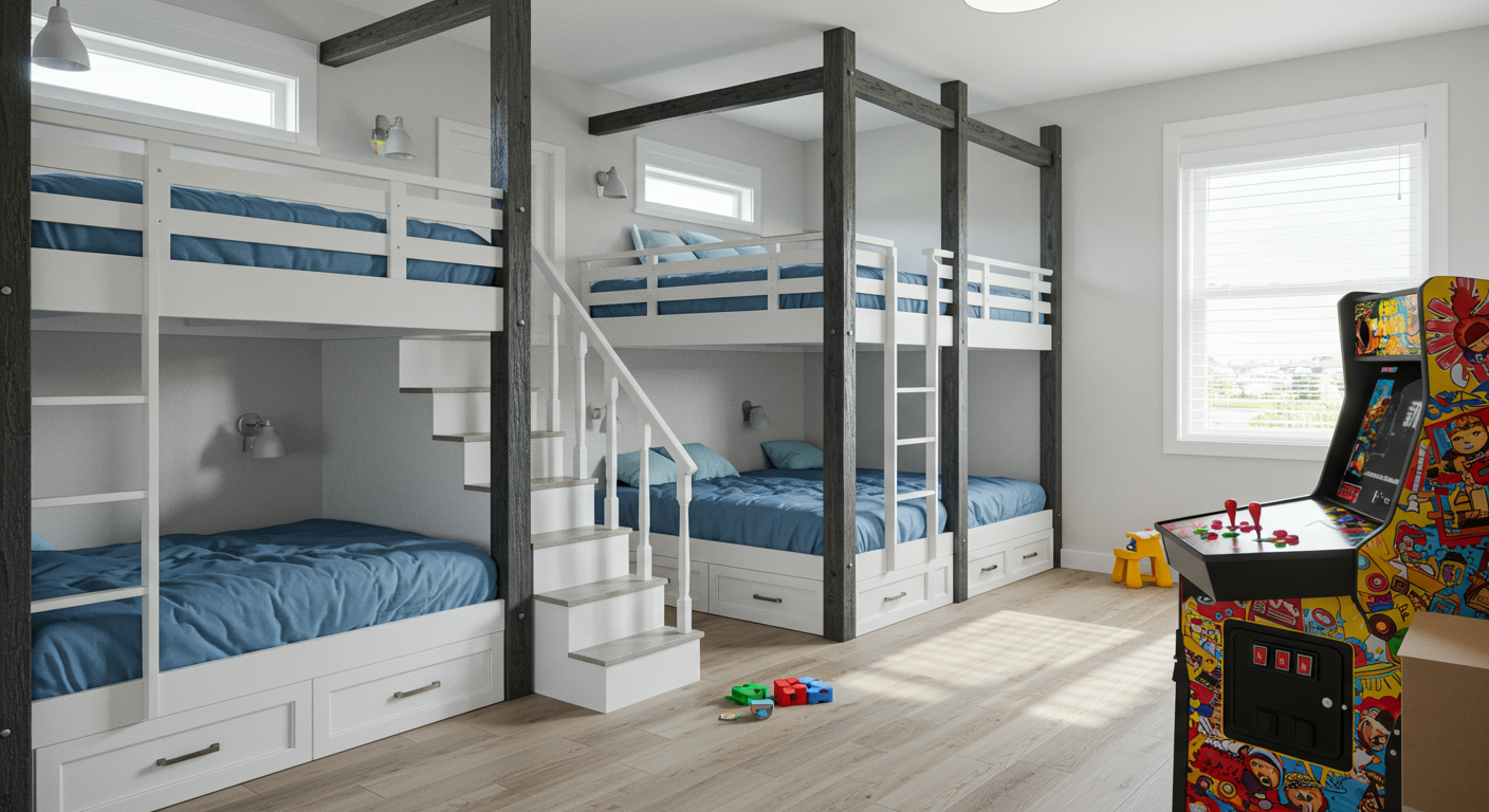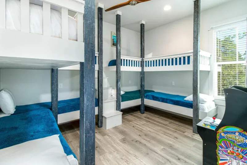 This beach cottage in Inlet Beach, FL features a custom bunk room that sleeps eight
