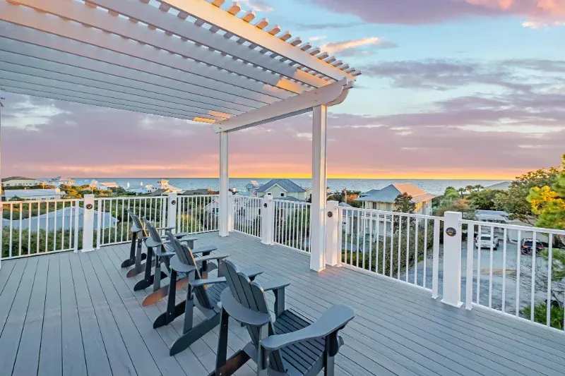 Luxury beach houses for sale in Inlet Beach, FL. feature roof decks with stunning views.